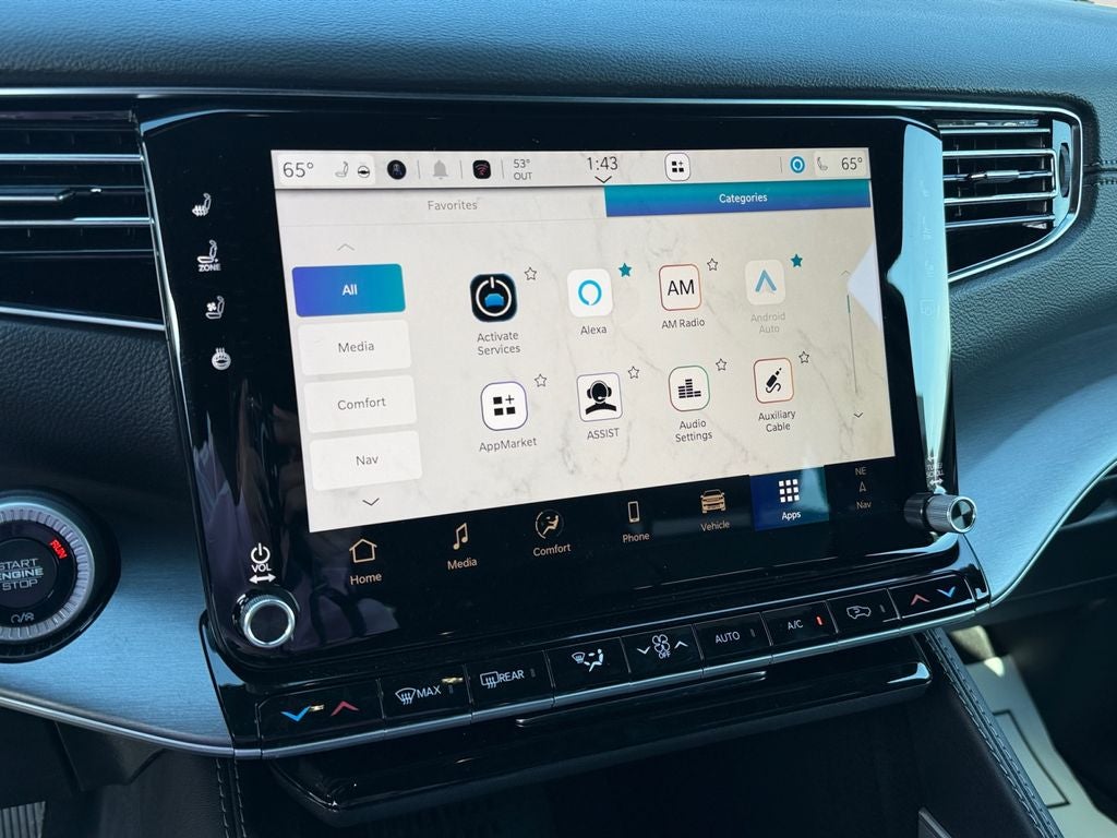 Step inside and be captivated by the meticulously crafted interior, featuring premium leather-trimmed bucket seats, heated and ventilated front and rear seats, and a luxurious leather-wrapped steering wheel. The Uconnect 5 navigation system with a stunning 12-inch display and the advanced Apple CarPlay and Android Auto integration keep you connected and entertained on every journey.